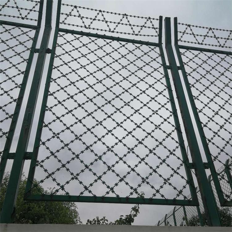 刀刺網又名刮刀型刺絲,是一種發展起來的防護、 隔離能力較強的新型防護網產品。鋒利的刀型刺由觀線扣裝后成蛇酸狀,既美觀又讓人不寒而某。起到了很好的阻嚇作用。同時該產品具有美觀、防阻效果好、施工便利等優點。刀片刺網又名刀片刺繩,是一一種發展起來的防護、隔離能力較強的新型防護產品。