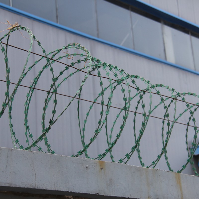 以上便是刀片刺繩噴塑的好處,噴塑刺繩特色涂層外觀質量優異,附著力及機械強度強;噴涂施工固化時間短;涂層耐腐耐磨才能高出許多。噴塑刀片刺網有如此多的長處,因而已受廣大客戶所喜愛。