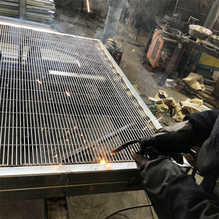 蛇腹型刀刻網與V型托網之間用適量固定卡子或用2-3條直徑3.0不銹鋼絲加固,鋼絲穿過V型托(預留孔)拉直固定。
