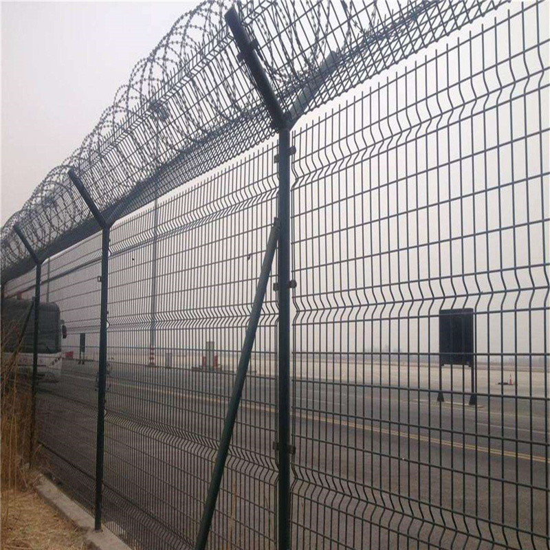 機場圍界又稱作“Y型安全防御網(wǎng)”,是由V型支架立柱、加強型焊接網(wǎng)片、安全防盜連接件和熱鍍鋅刀片刺絲網(wǎng)組成。無論是強度和安全防御等級都非常高。本文以焊接方格網(wǎng)片為例進行簡單介紹規(guī)格及技術參數(shù)。