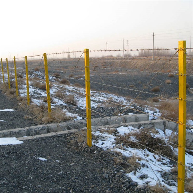 刺繩隔離柵主要采用刺鐵絲和立柱組合,做防護(hù)網(wǎng)使用,起到隔離防護(hù)的作用。刺鐵絲也可配合柵欄使用,架在柵欄的上方,多用在變電站,飛機(jī)場(chǎng),監(jiān)獄等地。