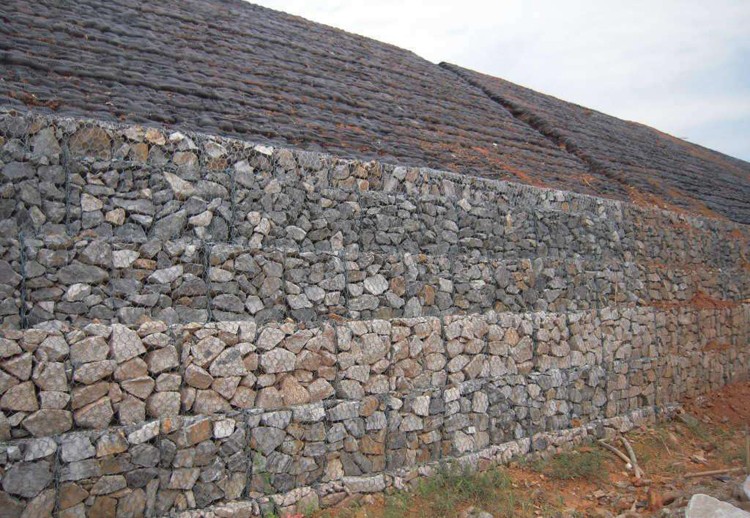 4、格賓網(wǎng)相鄰單元網(wǎng)箱的網(wǎng)片結(jié)合面每平米綁扎徹底檢查空網(wǎng)箱是否與放樣控制線保持一致,網(wǎng)箱高程是否符合設(shè)計(jì)要求。沒(méi)有問(wèn)題后方可進(jìn)行下一步工作。