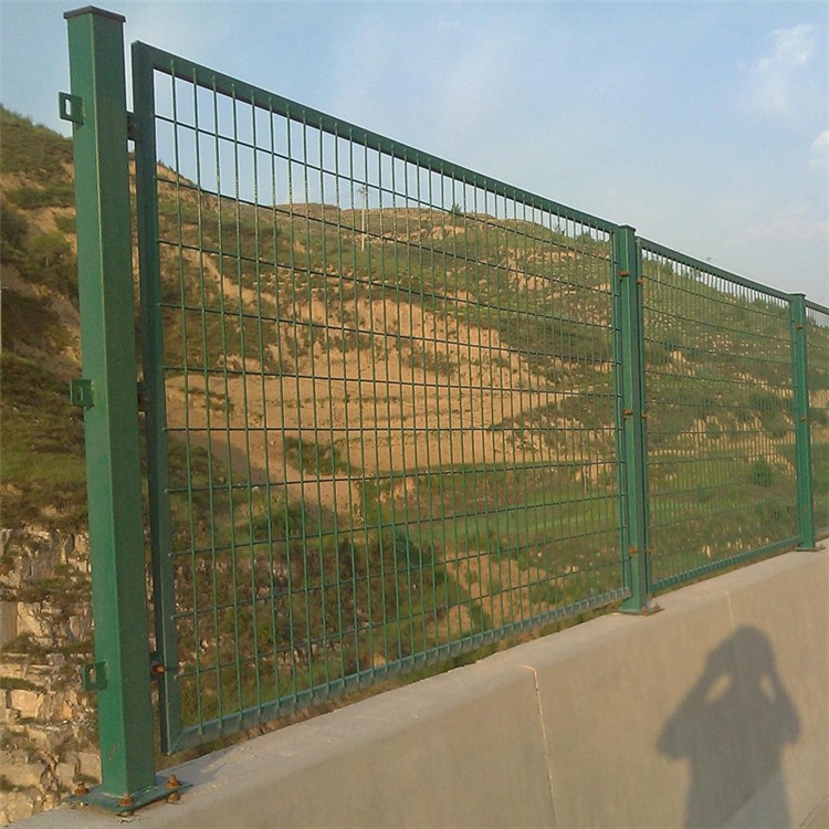 橋梁防拋網基礎構成材質方面具有很全面的認識。采用了低碳鋼絲編織而成的護欄網,相互交織能力更加穩定,相鄰的立柱與網片之間,采用的焊接與直埋地下等方式,將橋梁防拋網高度控制在180cm-200cm之間(具體橋梁防拋網高度標準可參考此鏈接 )。此外橋梁防拋網外層也采用雙模防腐浸塑工藝,我們見到的綠色表面浸塑后的護欄網,就是采用了這種方式,達到了最好的防腐、使用壽命長的特點。