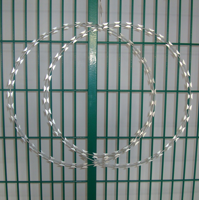 咱在具體分析一下到底刀片刺網(wǎng)和刀片刺繩都是什么產(chǎn)品。刀片刺繩很容易理解,就是帶刀刺的條形物,不管是直的還是螺旋的都類似繩子的形態(tài),古稱之為刀片刺網(wǎng)。刀片刺網(wǎng),何所謂網(wǎng),你得成面還得有邊有孔,能過濾一些東西才能稱之為網(wǎng),沒孔的那就是板了。所以刀片刺繩或焊接或通過其他手段鋪成一個面之后就是刀片刺網(wǎng)。經(jīng)過我上面的分析大家很容易就在大腦中形成圖像了,刀片刺繩是組成刀片刺網(wǎng)的基礎(chǔ),刀片刺網(wǎng)是刀片刺繩的高級形態(tài)。
