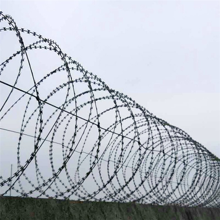 防爬刀片刺網,是一種新型防護網。刀片刺繩具有美觀、經濟實用、防阻效果好、施工便利等優異特點,目前,刀片刺繩已被廣泛應用于許多國家的工礦企業,園林公寓,邊防哨所,軍事領域,監獄,看守所,政府建筑物和其他國家的安全設施。