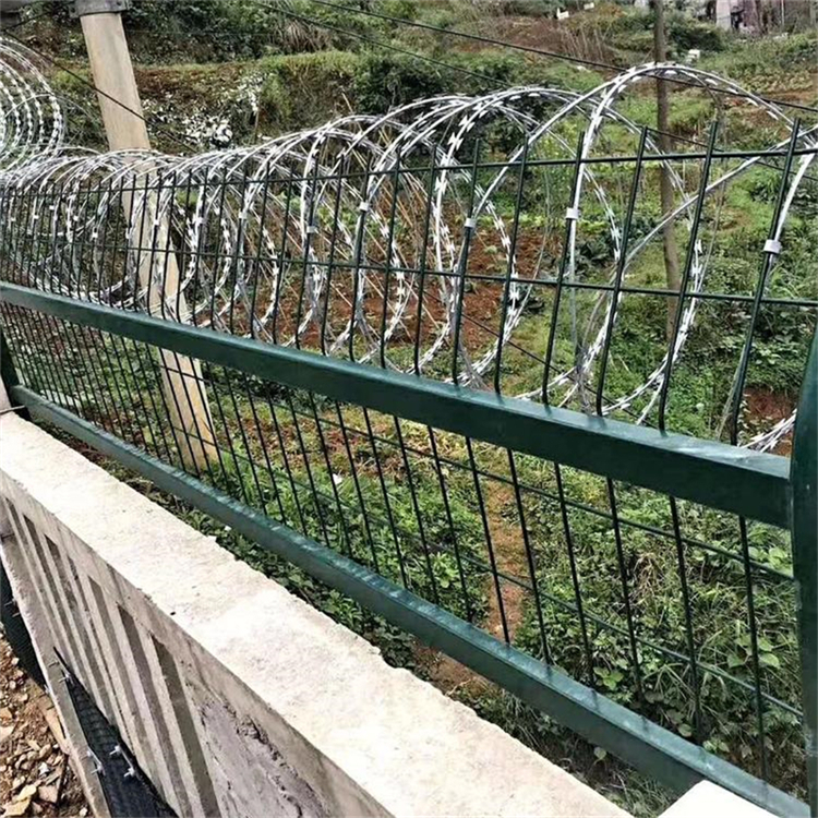 關產品特點:刀片刺網又名刮刀型刺絲,是一種近年發展起來的防護、隔離能力較強的新型防護網產品。鋒利的刀型刺由雙線扣裝后成蛇腹狀,既美觀又讓人不寒而栗。起到了很好的阻嚇作用。同時該產品具有美觀、防阻效果好、施工便利等優點。