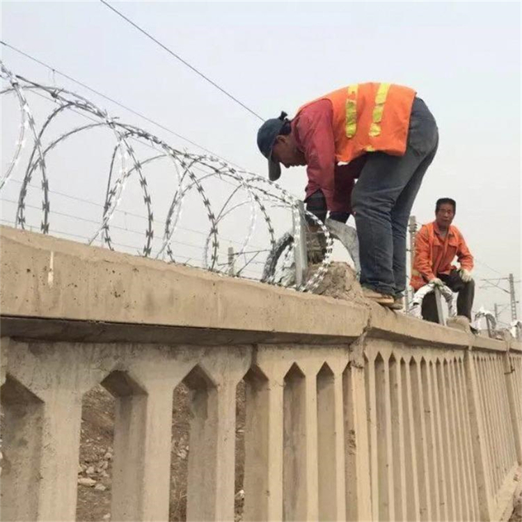標簽: 刀片刺網滾籠鐵路隔離防護鐵絲網、 鐵路刺絲滾籠安裝支架鐵路安全防護網、