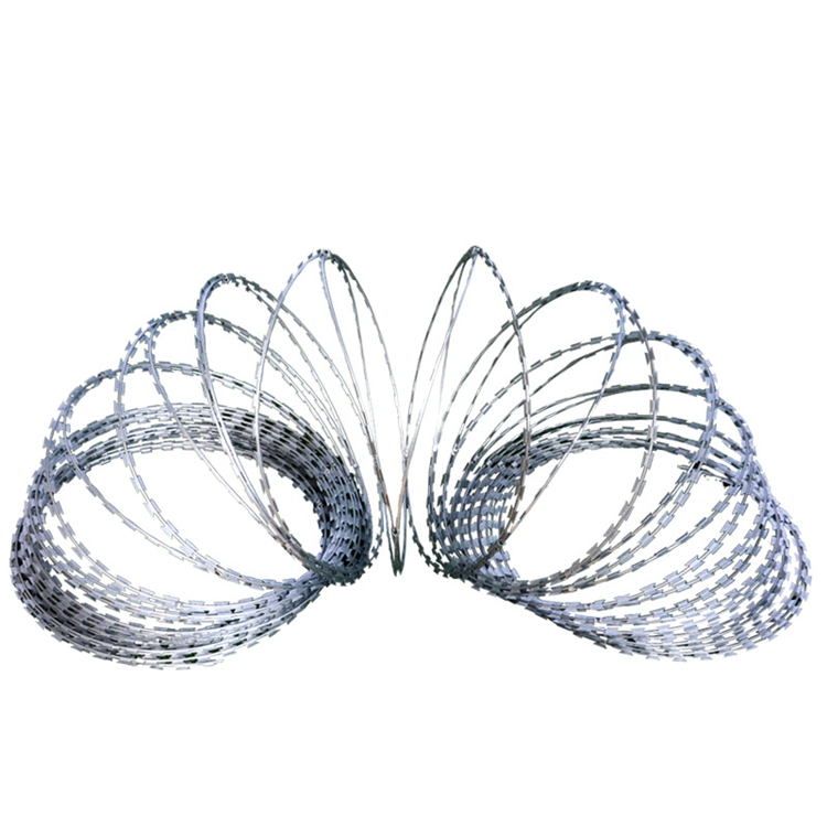 鐵路刺絲滾籠VS蛇腹形刀片刺繩 高鐵刀片刺絲滾籠 直徑50厘米刀片刺繩,刀片刺繩又名刮刀型刺絲,是圍墻防護、隔離防護網(wǎng)產(chǎn)品。鋒利的刀型刺由雙線扣裝后成蛇腹狀,起到了阻嚇作用。同時該產(chǎn)品美觀、防阻效果好、施工便利等優(yōu)點。刀片刺繩用于邊境做防護用,因刀片鋒利不易觸摸,起到一定的嚇阻作用那個,刀片刺繩,用途,他可以用于居民的墻體防護,圈地工廠圍墻小區(qū)墻垛等。型號:刀片刺網(wǎng)分為BTO-22。