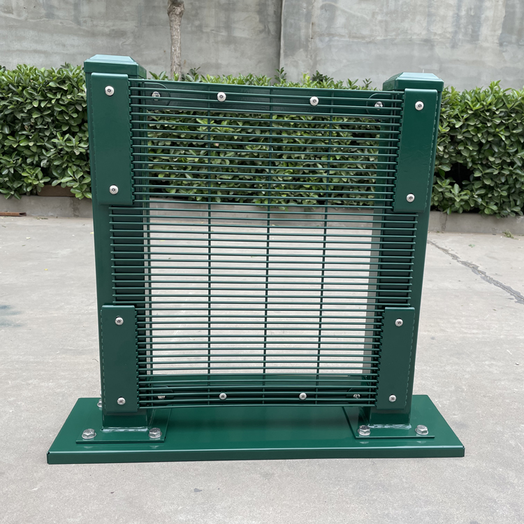 配件:一般配有方柱(60x60mmx3mm)跟護欄網片同樣的表面處理方式,通過螺絲將扁鐵和柱子,連接起來,也就是說防護網的安裝幾乎不受任何地形的任何影響,可以預埋或者是通過法蘭盤與水泥地面固定,,護欄頂部可以通過Y型柱配有片狀刺繩,普通刺繩,進一步起到防護作用。