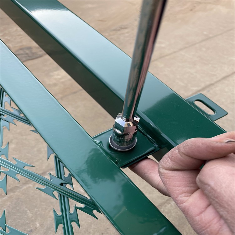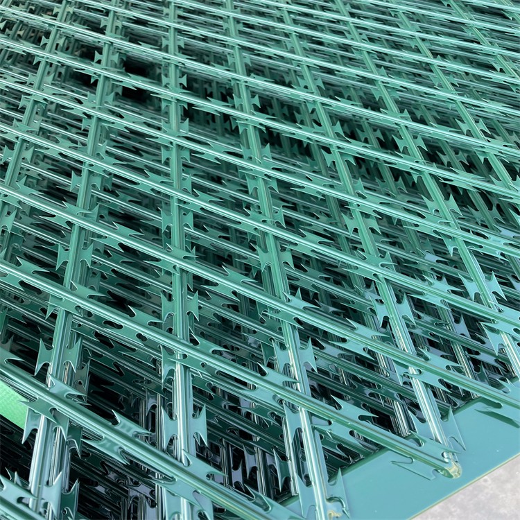 如若在監(jiān)獄護(hù)欄網(wǎng)的頂部加裝刀片刺絲或刀片刺繩,則能進(jìn)一步增強(qiáng)其安全防護(hù)性能。該產(chǎn)品采用了電鍍、熱鍍、噴塑、浸塑等防腐形式,因此具有很好的抗老化、抗曬、耐候等特點(diǎn)。其產(chǎn)品造型美觀、花色多樣,既起到了圍欄的作用,同時(shí)也美化了環(huán)境。由于具有高安全性以及良好的防攀爬能力,網(wǎng)片連接方式采用了特制的SBS緊扣件,有效防止了人為的破壞性拆卸。此外,該產(chǎn)品還橫向四道折彎加強(qiáng)筋,使網(wǎng)面強(qiáng)度顯著增加。