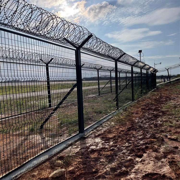 此外,機場圍界的立柱和框架的質量以及護欄的立柱和框架也是一個相對被忽視的領域。配備刀片式刺絲和刀片式刺繩后,機場護欄網的安全防護性能得到了很好的提高。