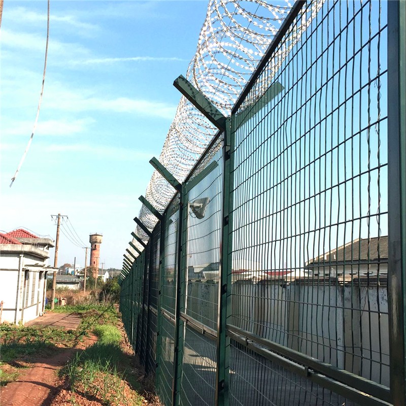 2、機場圍界防護網材料組織本工程主要材料為鍍鋅刀片刺網、鍍鋅刺繩、Y字頭支架。所有工程材料在開工前完成生產并運至施工現場。