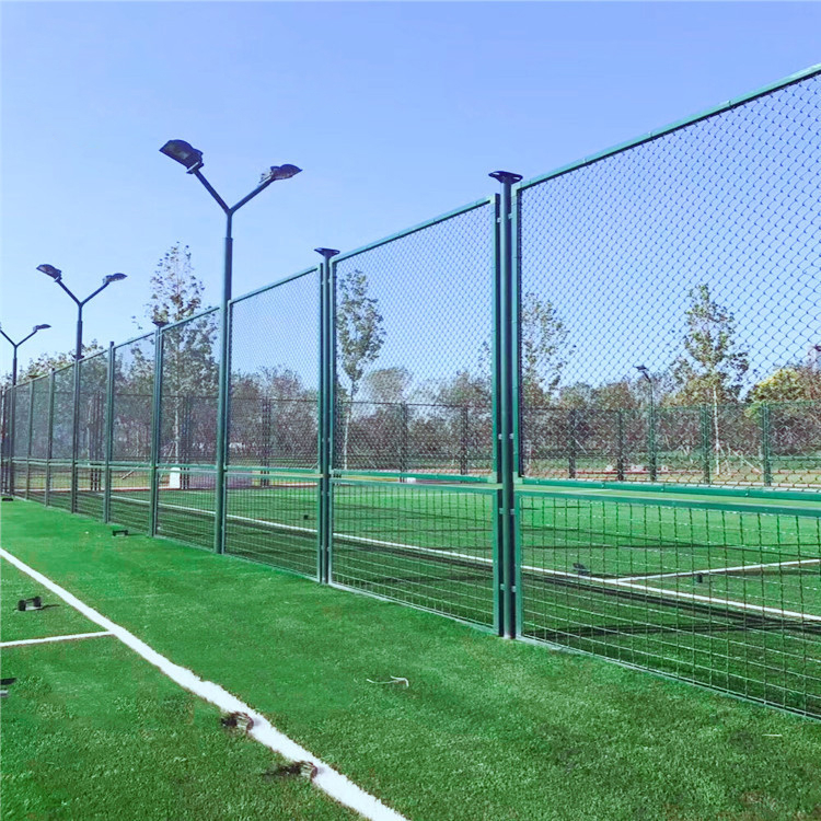 在籃球場(chǎng)、足球場(chǎng)等體育場(chǎng)所,可以使用勾花網(wǎng)護(hù)欄,網(wǎng)身為編織勾花網(wǎng),比普通焊接網(wǎng)網(wǎng)身受力更多,不會(huì)因?yàn)榍虻淖矒舳芯W(wǎng)片開(kāi)焊的的擔(dān)憂。