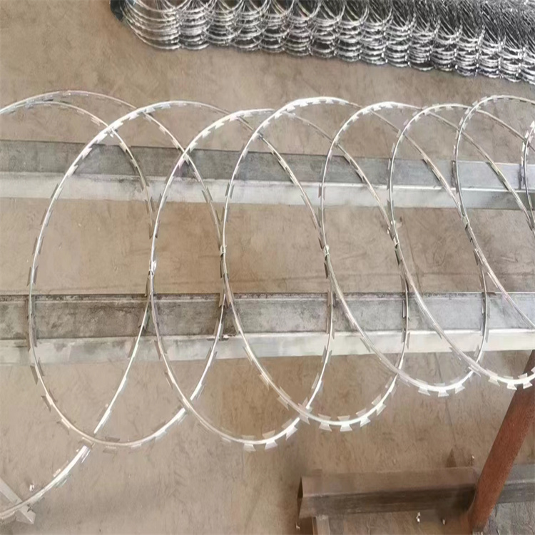 刺繩護(hù)欄網(wǎng)又叫做邊境阻隔網(wǎng)。本產(chǎn)品具有防腐、防老化、抗曬、耐候等多種特性,其防腐形式包括電鍍和熱鍍。此外,我們還有刺鐵絲護(hù)欄網(wǎng),這是一種新型的護(hù)欄網(wǎng)產(chǎn)品,具有優(yōu)異的嚇阻效果、美觀、施工便利和經(jīng)濟(jì)實(shí)用等特性。該產(chǎn)品主要用于園林公寓、機(jī)關(guān)單位、監(jiān)獄、哨所、邊防等需要進(jìn)行圈禁防護(hù)的場(chǎng)所。刀片刺網(wǎng)由熱鍍鋅鋼板或不銹鋼薄板沖壓出尖銳的刀片狀,高張力鍍鋅鋼絲或者不銹鋼絲做芯線組合而成,是一種阻絕器材。由于其造形獨(dú)特且不易觸摸,因此能達(dá)到極好的防護(hù)隔離效果。產(chǎn)品的主要材質(zhì)有鍍鋅板和不銹鋼板。